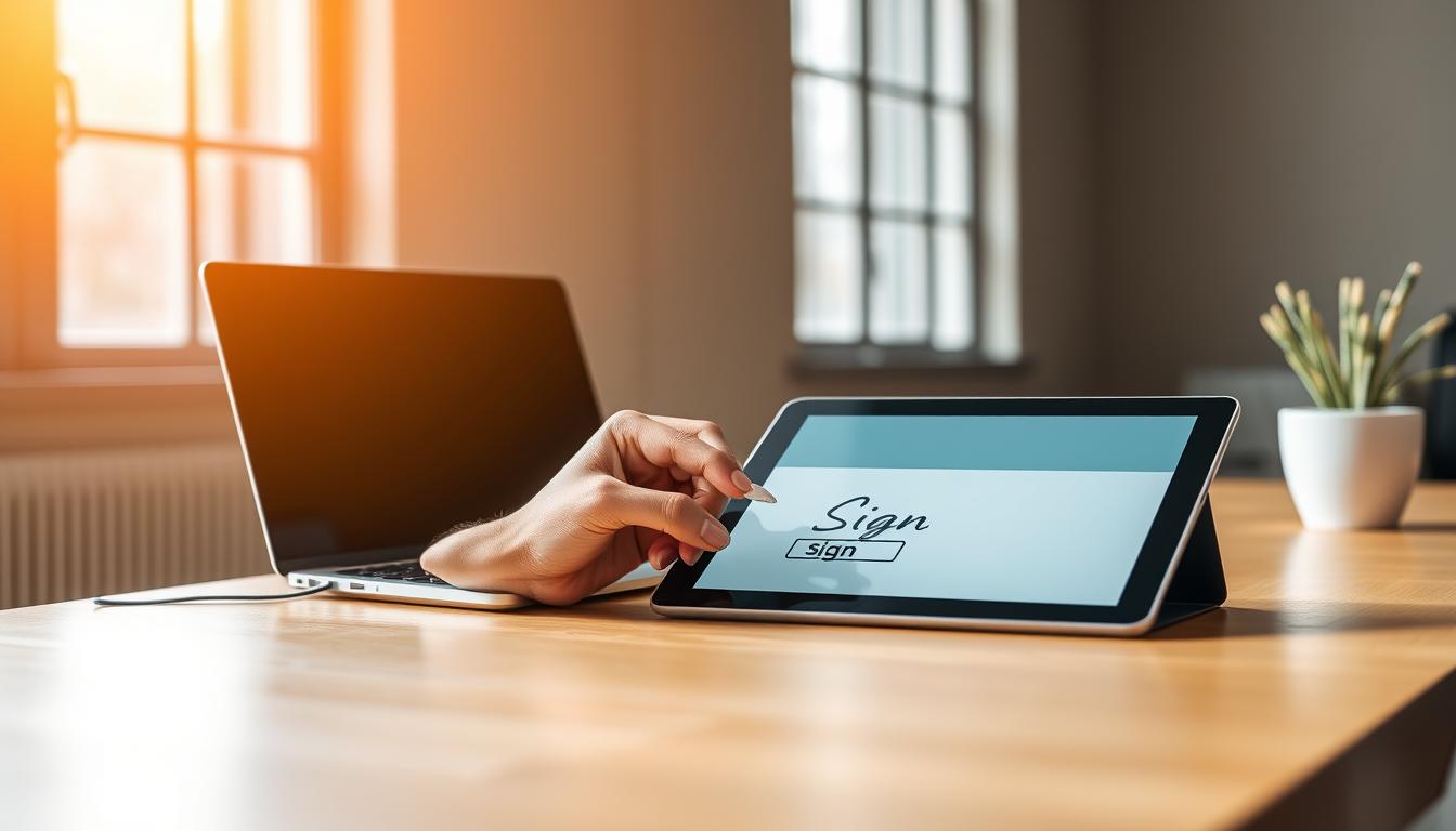 Die Erstellung einer digitalen Unterschrift ist einfach und benutzerfreundlich. Zunächst müssen Sie ein passendes Online-Unterschriftstool auswählen, das auf Ihre Bedürfnisse zugeschnitten ist. Hierbei ist es wichtig, auf vertrauenswürdige Verschlüsselungstechniken und die Einhaltung von Standards wie eIDAS zu achten.